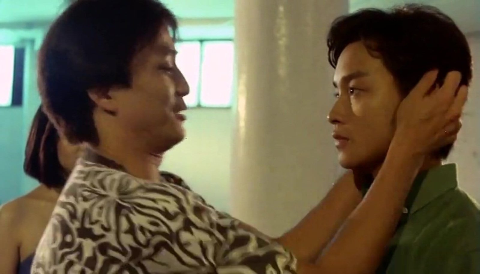 Louis instinctively pushes back against the traditionalist challenge to his masculinity, and is played with full conviction for it. But for Cheung himself this would be (to my knowledge) the first role of quite a few to come that heavily teased, suggested then finally cemented his LGBTQ persona and identity up to his “official” confirmation live in concert in 1997. (Lesbianism meanwhile, is a little more than “teased” here.) Kent Tong, however, was at the time the biggest screen star of the bunch as one of the “Five Tigers” (which also included Andy Lau and Tony Leung CW) of TVB in a few of its (and therefore, HK’s) biggest TV shows. With the cast contributing almost as much to the blending moods as the director, Cheung and Ha generally sway the film most towards drama territory while Yip and yet more so Tong carry a comedy aura. But it says something for he and Ha’s chemistry that they’re able to segue one of HK cinema’s most hilarious extended scenes also into one of its sexiest.